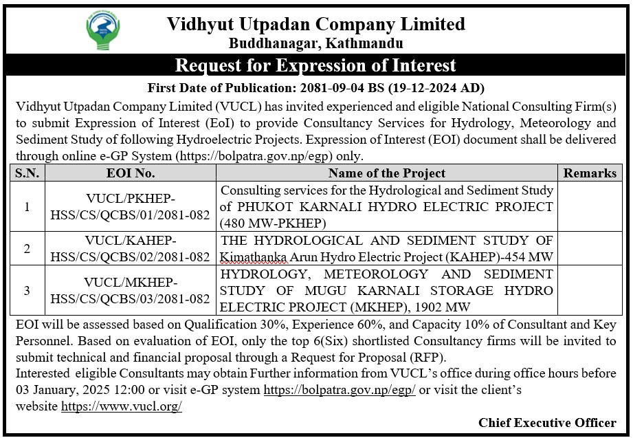 - EOI Notice to provide Consultancy Services for Hydrology, Meteorology and Sediment Study of PKHEP,KAHEP & MKHEP