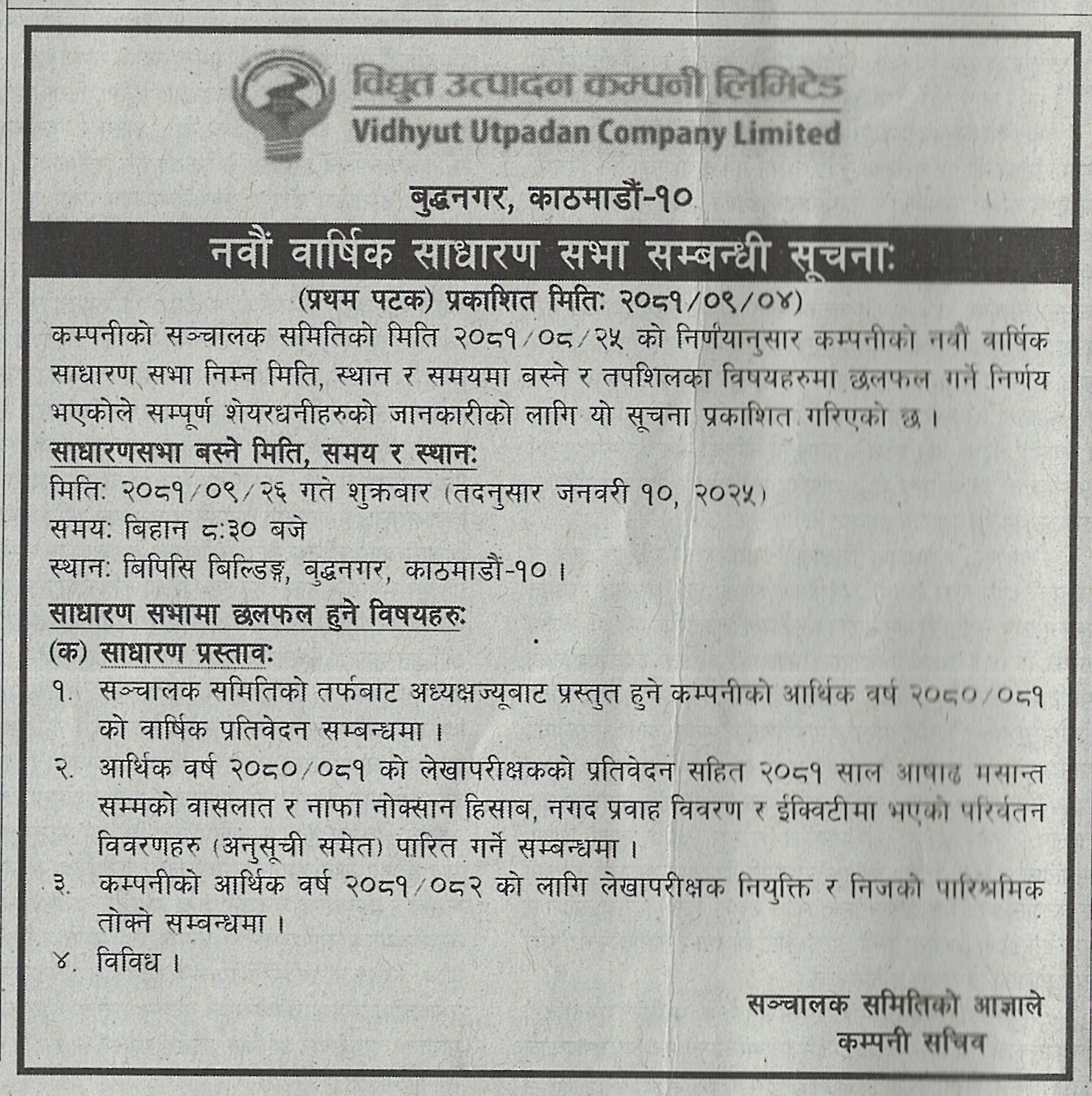 - नवौं वार्षिक साधारण सभा संम्बन्धी सूचना