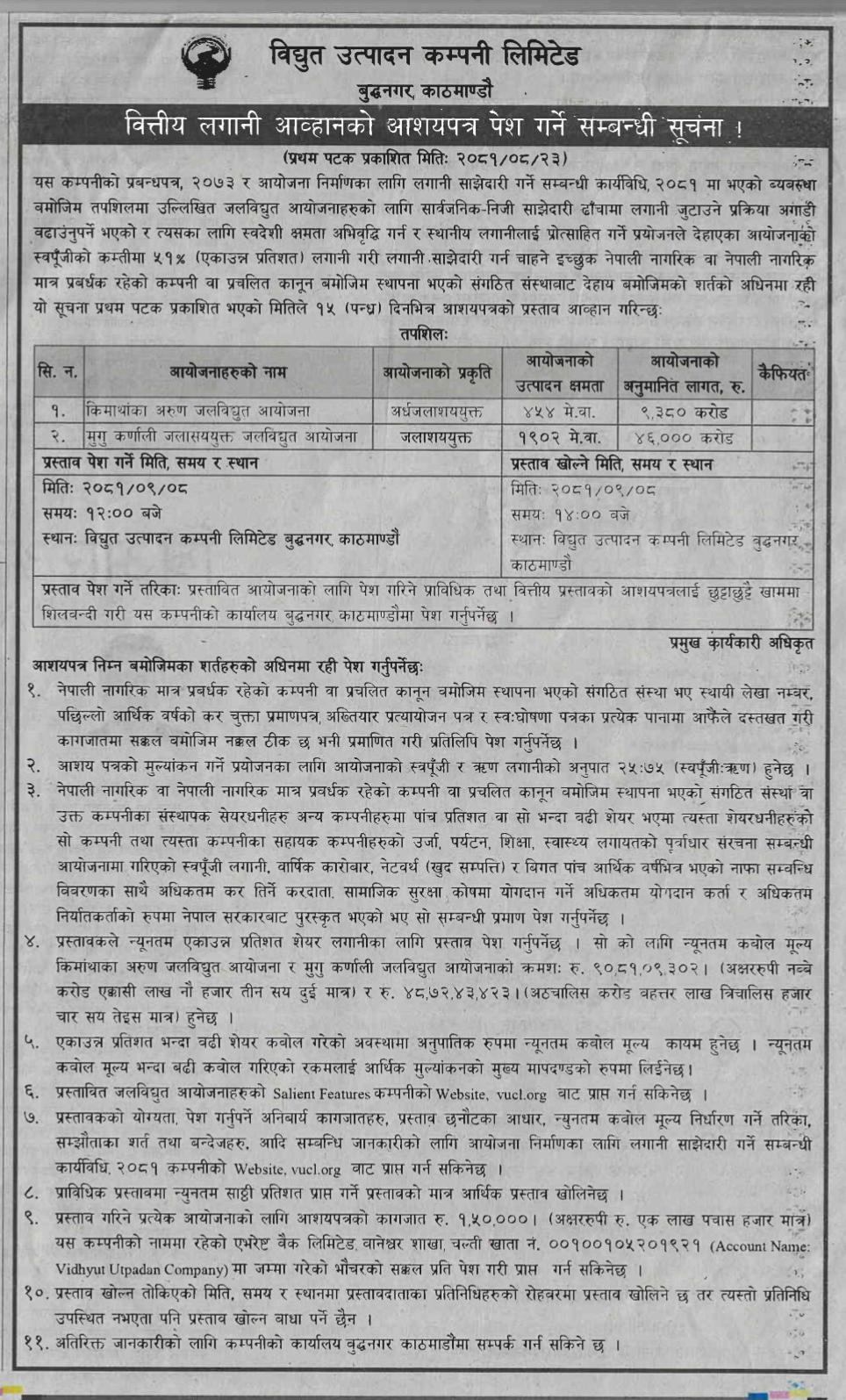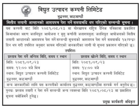 - फुकोट कर्णाली ज.वि.आ.. को ४०० के.भी. विद्युत प्रसारण लाइन आयोजनाको वातावरणीय अध्ययन सम्बन्धी सार्वजनिक सुनुवाईको सूचना